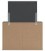 • Drawer interiors are lined with a faux linen laminate for a clean, finished look